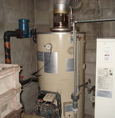 | タクマ バコティンボイラー 貯湯槽 ろ過機 →ノーリツボイラーMBX9000に交換 |
