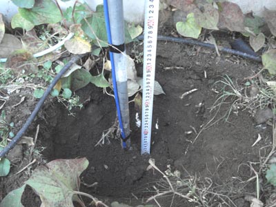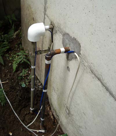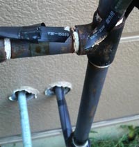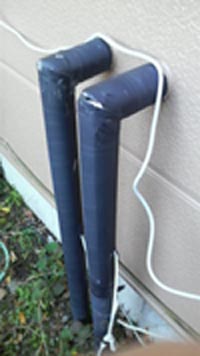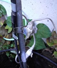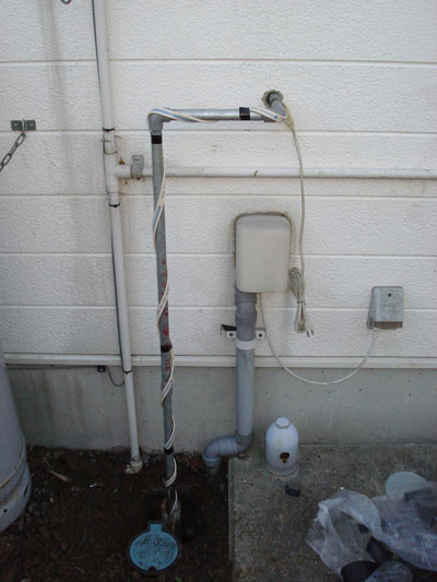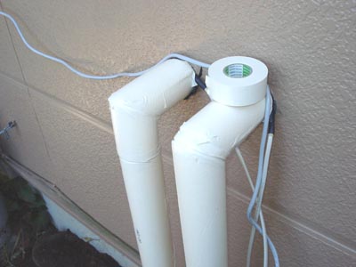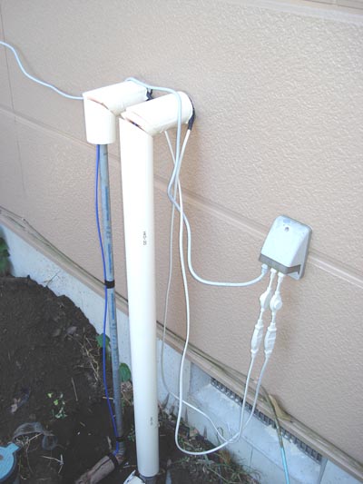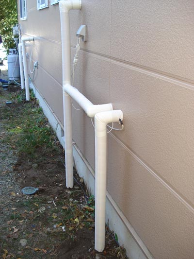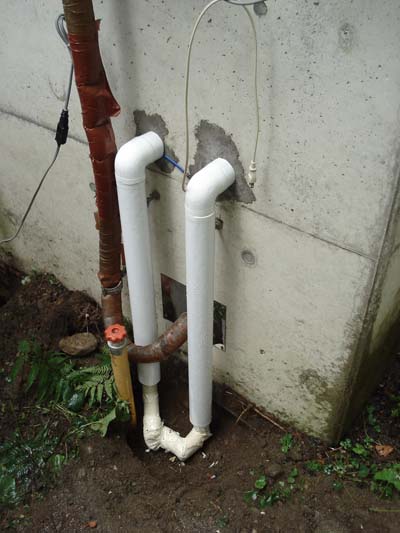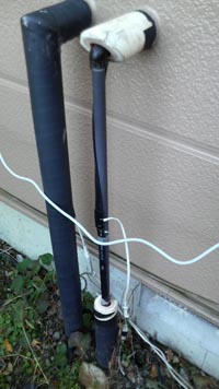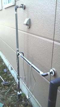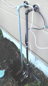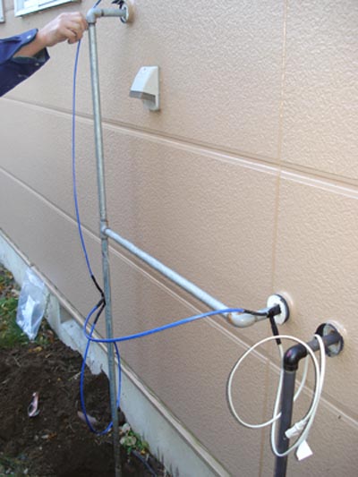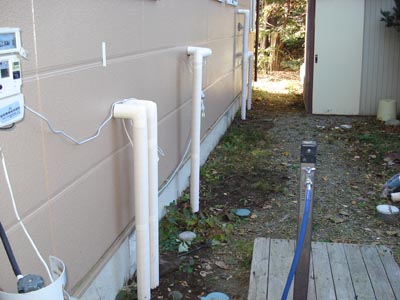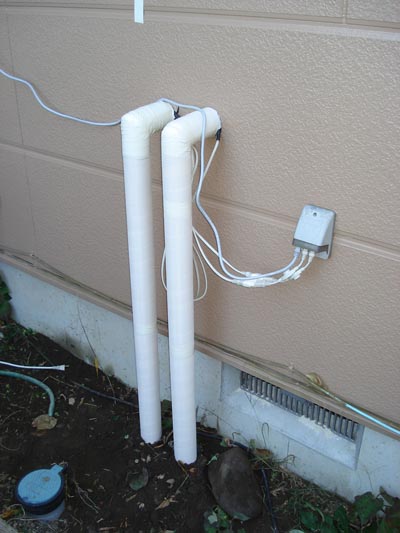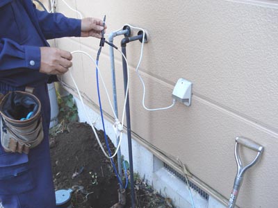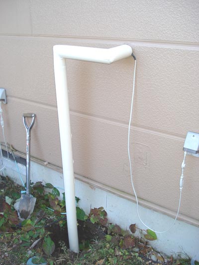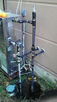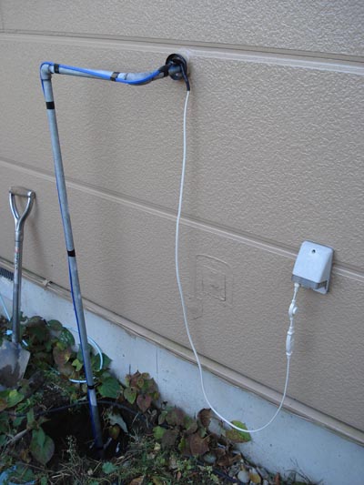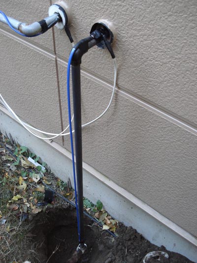 埋設部にも凍結防止帯、ヒーターを取り付けます。地域、場所によっては凍結深度が深い場合がありますので念には念をいれて施工しております。