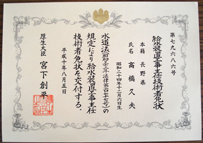 給水装置主任技術者
