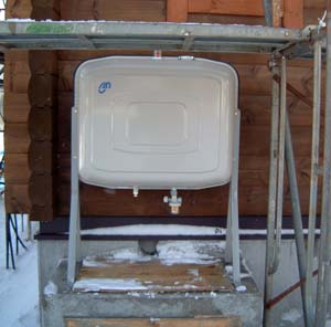 新築物件 サンポットFF式暖房機設置しました。ログハウスの為、給排気筒の貫通穴の穴あけは少し面倒でした。